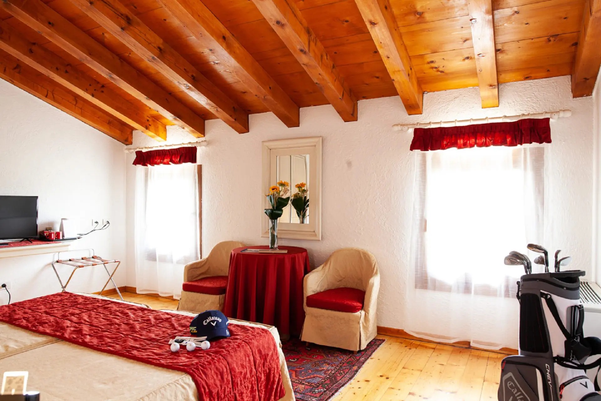 Asolo Golf Club tilbyder overnatning direkte på golfbanen i klubbens charmerende Foresteria, der er indrettet i en smukt restaureret, historisk bygning. Her findes 9 komfortable værelser og 2 junior suiter med moderne faciliteter som aircondition, eget badeværelse, TV og WiFi. Flere af værelserne har udsigt over golfbanen og det grønne landskab.