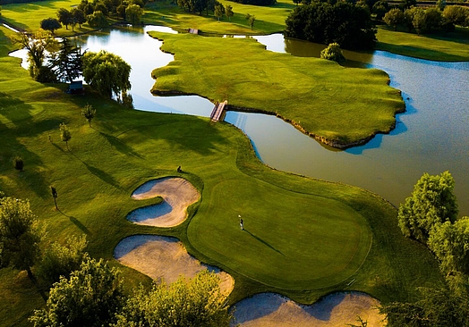 Arnold Palmer har skabt en mesterskabsbane i verdensklasse, både teknisk og æstetisk, som spreder sig over 75 hektarer og har en total længde på 6350 meter. Banen karakteriseres af adskillige strategisk placerede vandhazarder og bunkers og byder på udfordringer for alle golfere, uanset om du er amatør eller professionel. De store bunkers, som ligger spredt langs fairways og beskytter de store og hurtige greens, harmonerer med vegetationen og de store søer, som dominerer hele 12 af banens huller. Greenen på hul 18 ligger i hjertet af parken og byder på et mindre dogleg mod højre, med bunkers på begge sider og er omringet af parkens gamle træer; en perfekt afslutning på en golfbane, som er en golfchampion værdig.