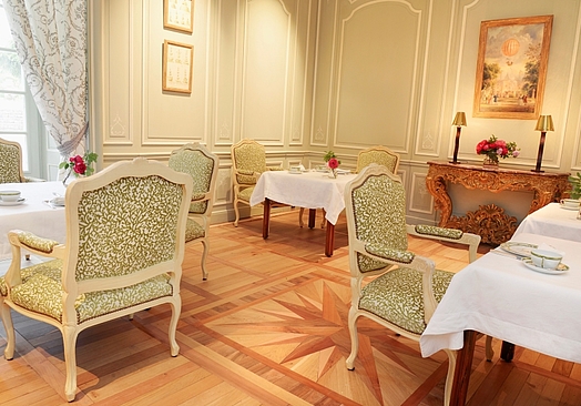 Green Salon blev renoveret i 2014 og er det perfekte sted at nyde din morgenmad eller frokost og omfatter en smuk kamin, antikke møbler og udsigt til haverne. På sommerdagene kan du nyde din mad på terrassen, med udsigt til Dordogne.