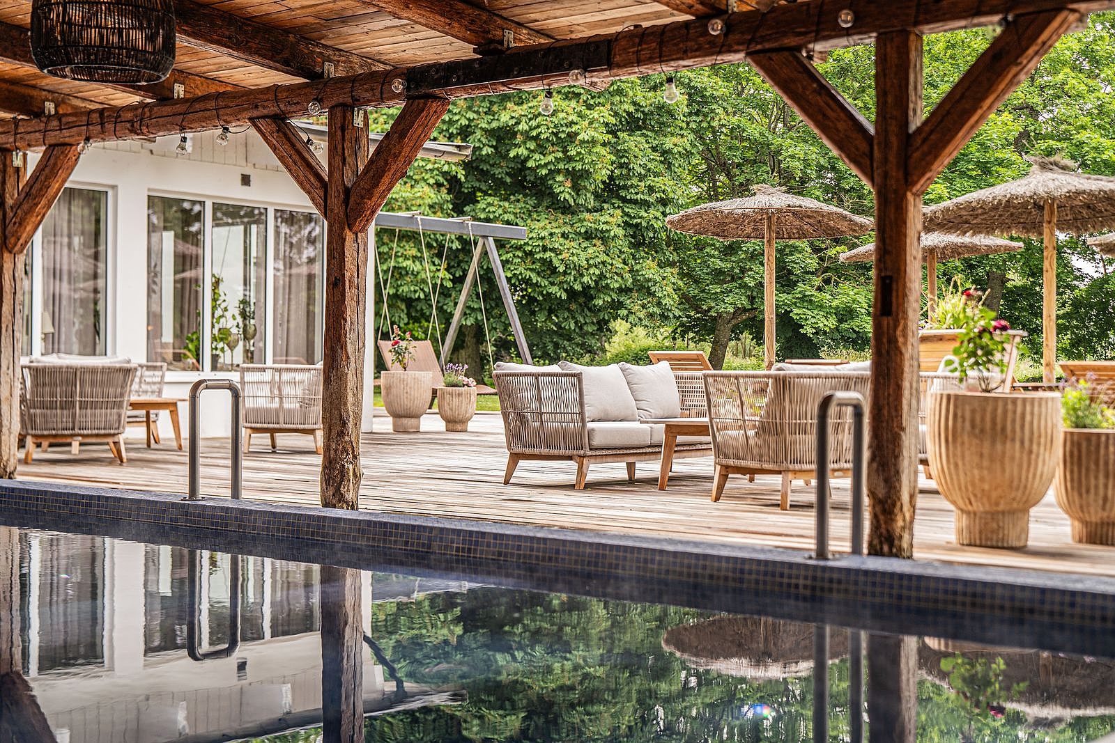 På Elisefarm befinder du dig i et afslappende og fredfyldt miljø, hvor du kan nyde en velfortjent pause fra hverdagen. Her findes der mulighed for at bestille massage og benhandlinger. Spaområdet har et hyggeligt relaxområde, både inden- og udendørs, samt tre varme udendørs bade, sauna, dampbad og 2 behandlingsrum. Uden for Herregården og ved siden af spaområdet er der en udendørs pool, der er opvarmet i løbet af sæsonen (maj - september).