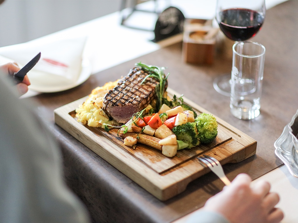 Restauranten Det Rustikke Landkøkken serverer lækre retter tilberedt med årstidens råvarer. Hver morgen serveres der en varieret morgenbuffet, som indeholder alt der skal til for at lade energidepoterne op til en skøn dag på golfbanen.