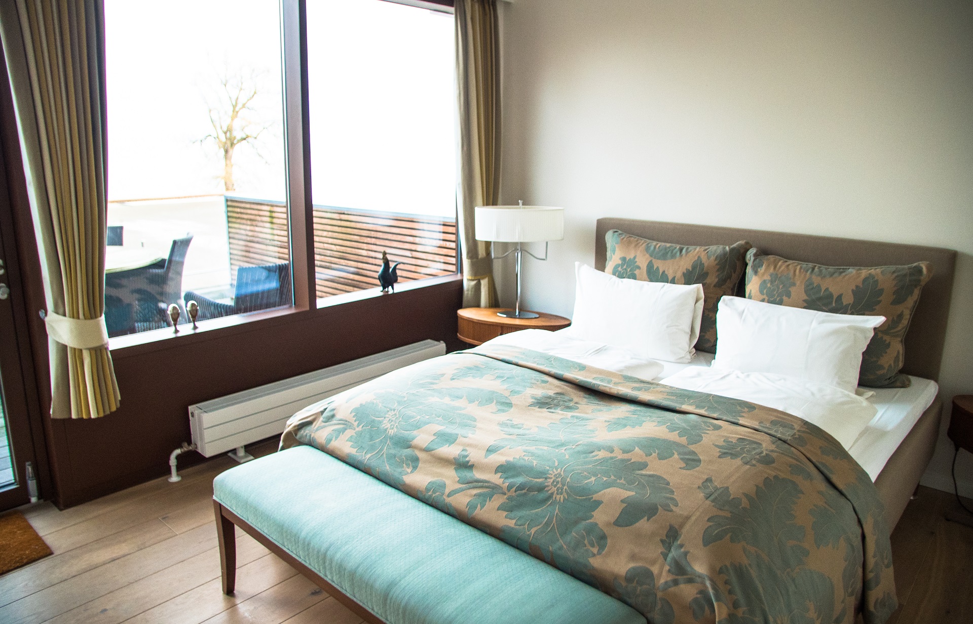 De 8 suites, på 60 m2, har egen separat stue, med entré og arbejdsområde, soveværelse med king-size seng og stort et badeværelse, som har badekar og bruser. Du har adgang til terrassen både fra soveværelset og stuen.