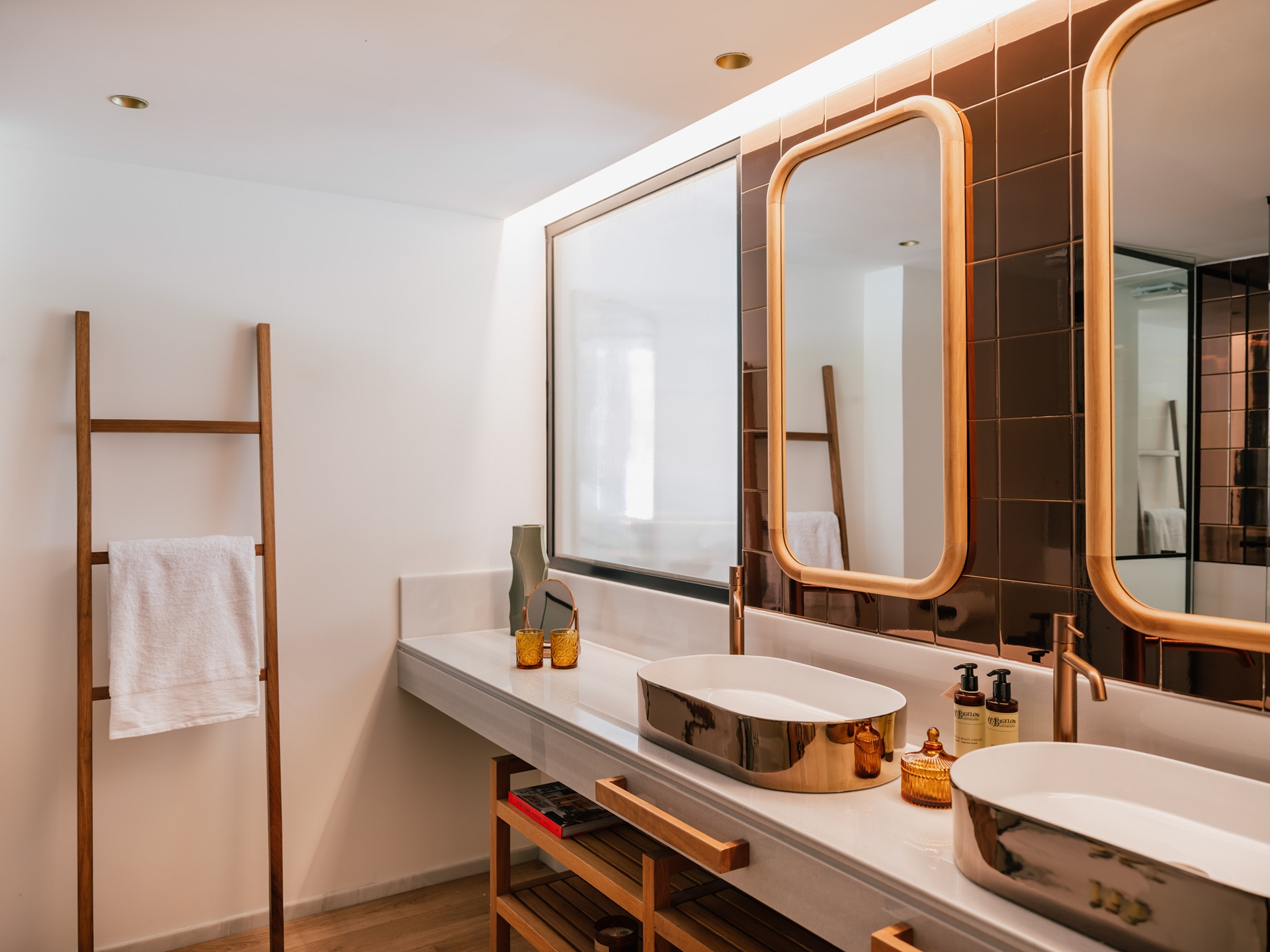 Hotellets værelser og suiter er stilfuldt indrettet i moderne middelhavsdesign med lyse farver, store vinduer og udsigt til enten haven, poolområdet eller havet. Alle værelser har komfortable senge, rummelige badeværelser og de nyeste faciliteter. Mange værelser har egen balkon, hvor du kan nyde solopgangen eller en drink i aftensolen.
