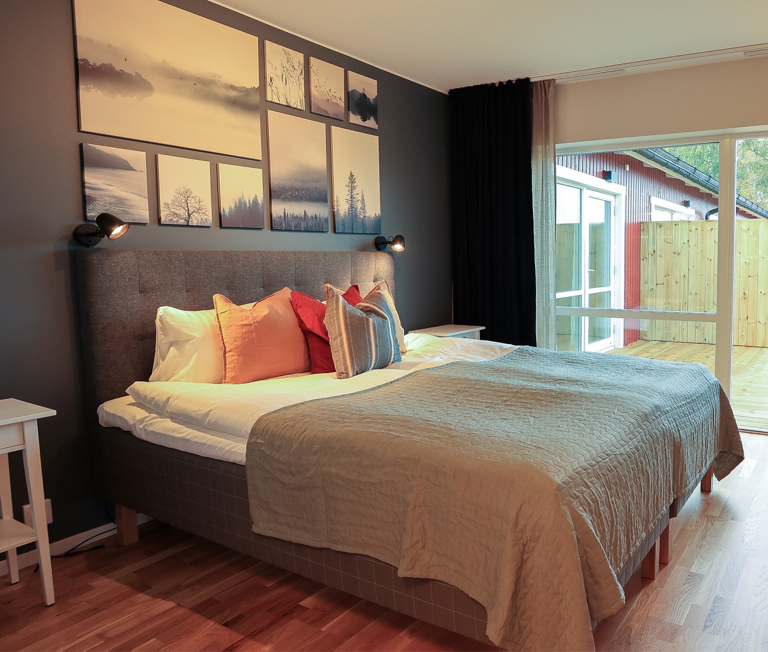 Rett ved første tee og treningsområdet ligger de 10 nybygde dobbeltrommene av høy standard. Det er plass til campingvogner og bobiler ved klubbhuset.