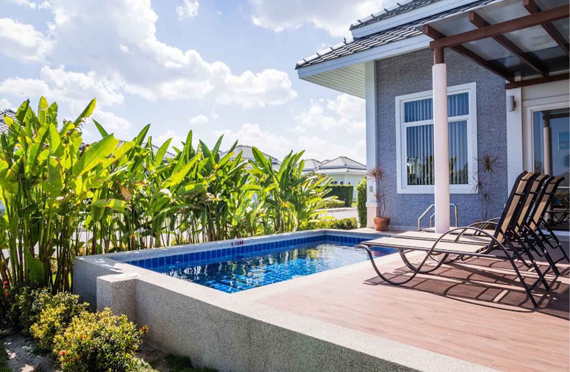 Bo på golfbanen i en av de populære bassengvillaene. Villaene består av to soverom og kombinert kjøkken og stue, fordelt på 150 m2. Inkludert i området er også en stor terrasse med eget bassengområde.