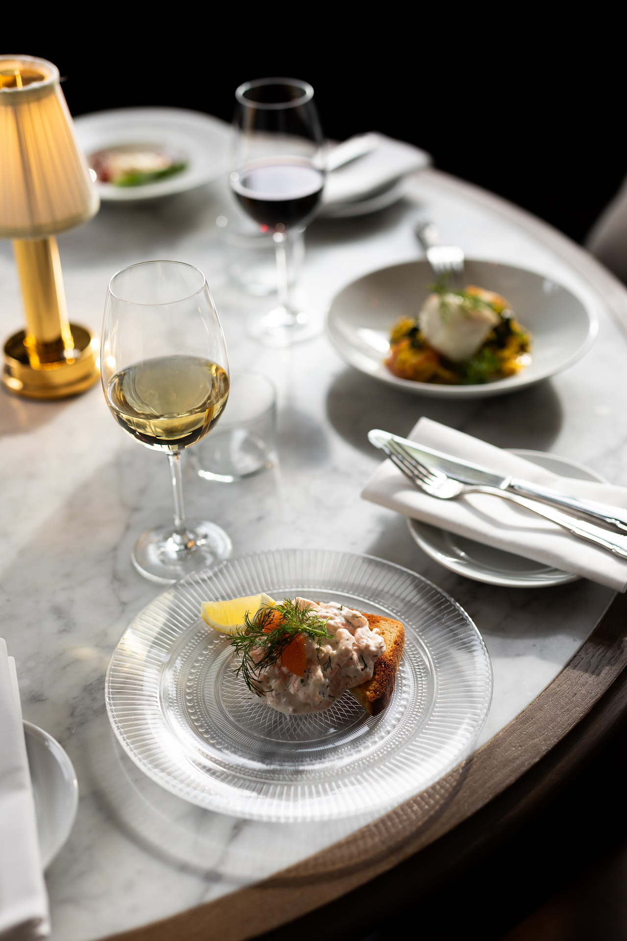Når du setter deg ned venter en smaksreise som strekker seg fra «Gourmandises» til «Les Dessert». Restaurantpersonalet er der for å guide deg gjennom menyen for den beste opplevelsen. Vil du dele noen retter eller vil du danse deg gjennom hele menyen? Det er ingen rett eller galt, menyen er designet for å tilfredsstille dine behov og smaksløker. Det er lett å gå seg vill blant det brede utvalget av viner, men den kunnskapsrike sommelieren hjelper deg med å finne veien gjennom jungelen. Len deg tilbake og føl deg hjemme i restauranten.