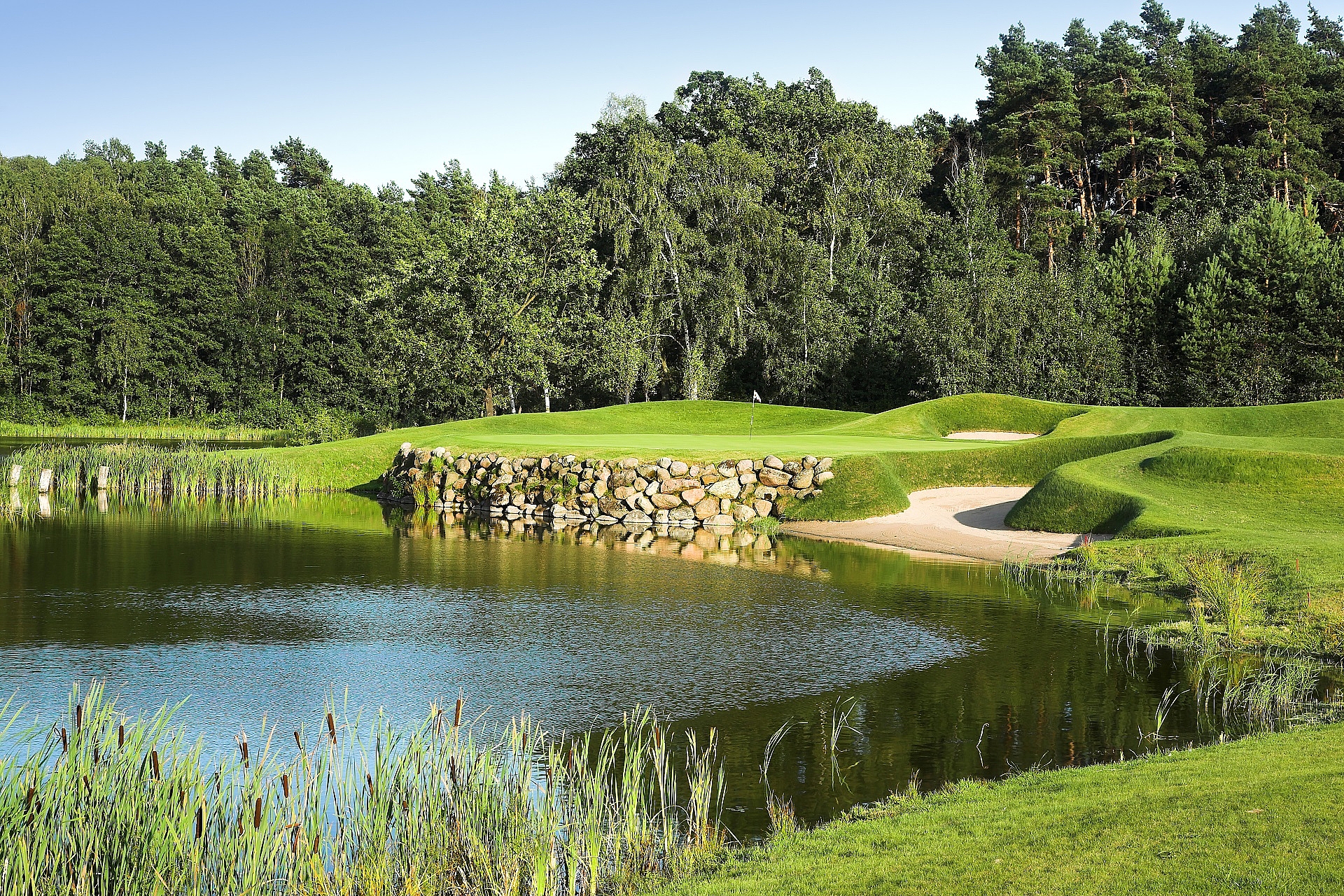 Golfbanen er 18 hulls mesterskapsbane åpnet i 2009, siden da har det tilkommet en 9 hulls golfbane og et treningsområde i høy internasjonal klasse. Banen har blitt kåret til en av de 100 beste golfbanene i Europa av Golf World og ligger i et lettere kupert terreng mellom skog og innsjøer. Banen er en fornøyelse å spille på for golfere på alle nivåer, da du hele tiden utfordres til å spille veldig nært de to innsjøene, de dype og bratte bunkers og de raske greenene.