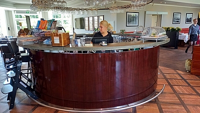 Vi fik en meget venlig modtagelse - Både i restauranten og i proshoppen. Vi var kommet i god tid, så vi spiste frokost inden vi skulle spille. Vi fik noget fantastisk lækkert smørrebrød til en yderst rimelig pris.