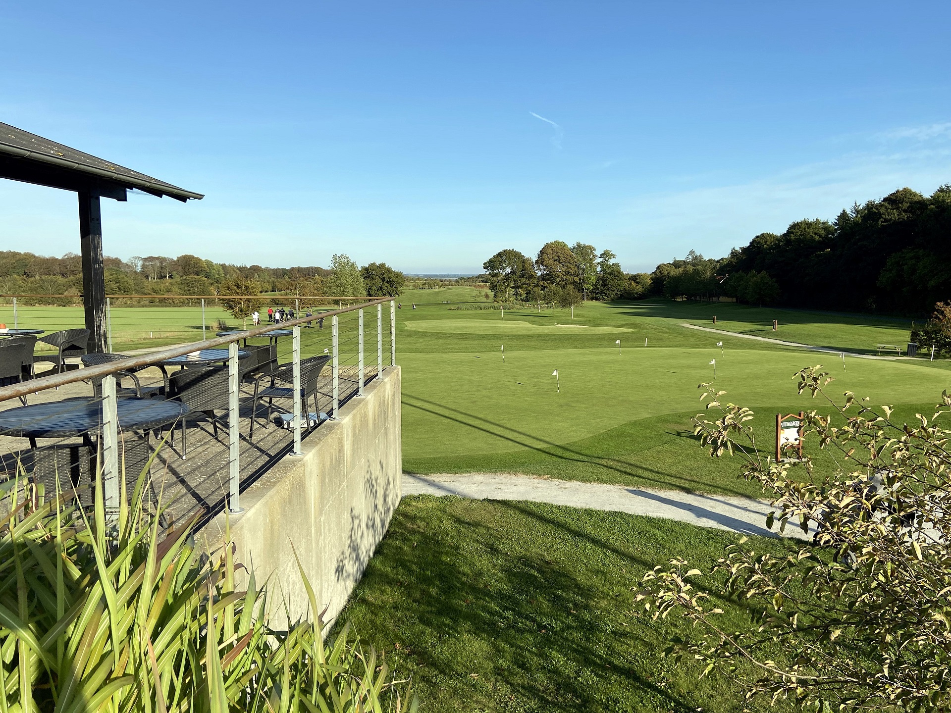 Fra klubbhusets terrasse ser du utover på puttinggreenen. Du har også mulighet til å se golferne på 1. hull, som har vannhindring, eller du kan følge avslutningen på 18. green. I klubbhuset finnes en automat med vin, øl og vann, snacks og noe for søtmonser, så du kan få stilnet tørsten etter en spennende golfrunde.