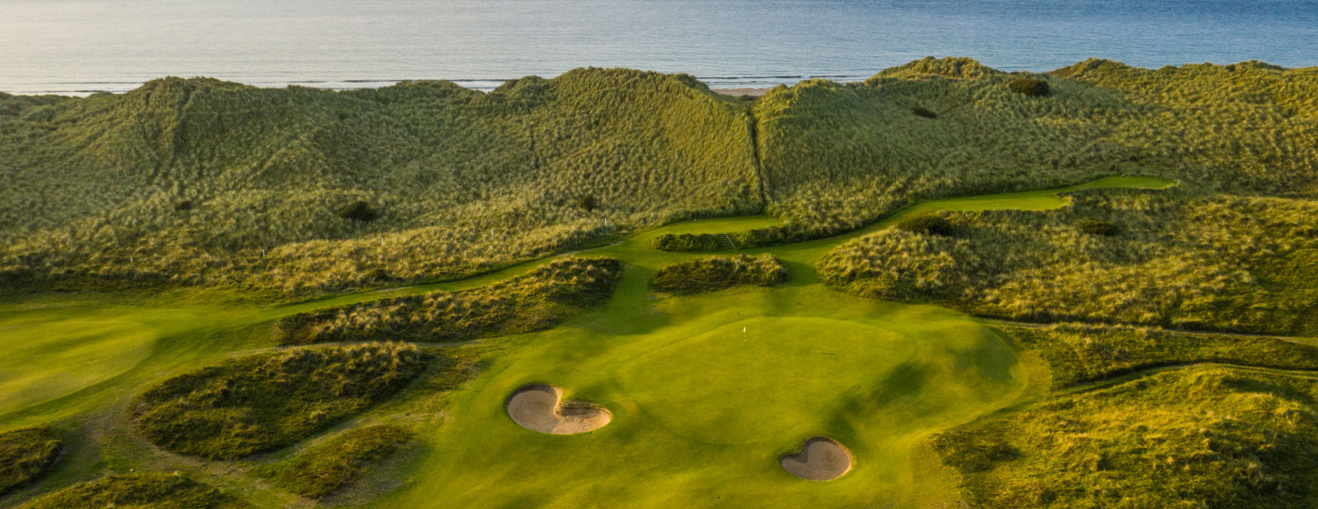 Dunluce Links er rangert som en av verdens beste golfbaner, og er et mesterverk innenfor golfarkitektur. Usannsynlig vanskelige og utfordrende greens, kombinert med værets uforutsigbarhet og det brølende Atlanterhavet gjør denne golfbanen til en beundringsverdig test for selv den mest erfarne golfentusiast. Banen skal også være vertskap for The Open Championship i 2019! Dunluce Links byr på et av de mest betagende par 4 hull, det 376 meter lange hull 5; et dogleg hull, spilles fra en forhøyet tee, ut mot havet, og belønner et modig slag på tvers av en bred rough. Man skal dog være forsiktig, da et for langt slag vil føre ballen helt ut i sanden på White Rocks stranden, som ligger like bak greenen. Husk å stoppe opp og nyte øyeblikket og den flotte utsikten til Dunluce-slottet og havet.
