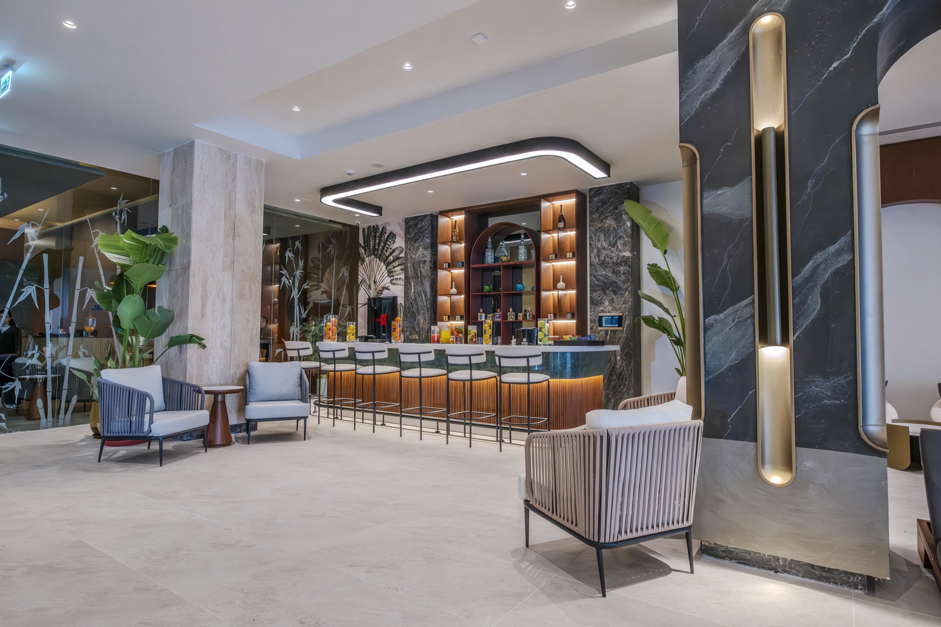 Om du vill koppla av under solens strålar kan du göra det antingen vid det läckra utomhuspoolområdet eller på hotellets privata strand, där du kan koppla av i eleganta omgivningar och njuta av en simtur i Medelhavet.