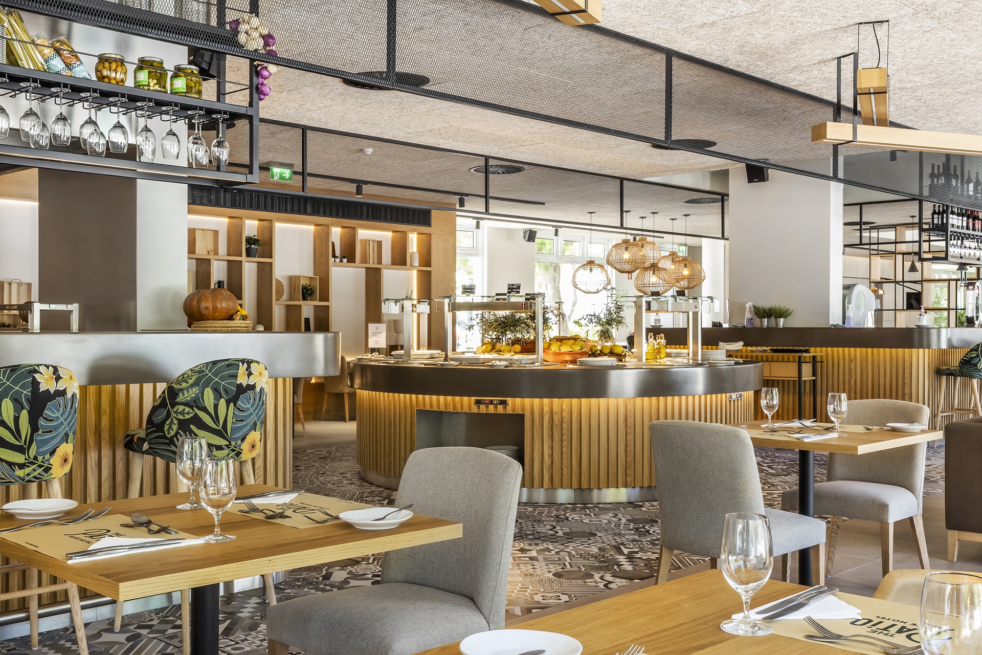 Hotellets gastronomi följer ett öppet och livligt koncept, där Patio Bistro fungerar som hotellets centrala matställe. Här serveras en varierad buffé med lokala och internationella rätter – från frukost till middag – i en avslappnad atmosfär. Dessutom finns barer och poolbarer där gäster kan njuta av drycker och lätta snacks under dagen. De öppna matområdena skapar en social miljö där gäster kan umgås och koppla av efter en dag med golf eller strandaktiviteter.