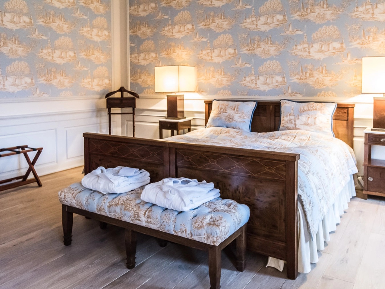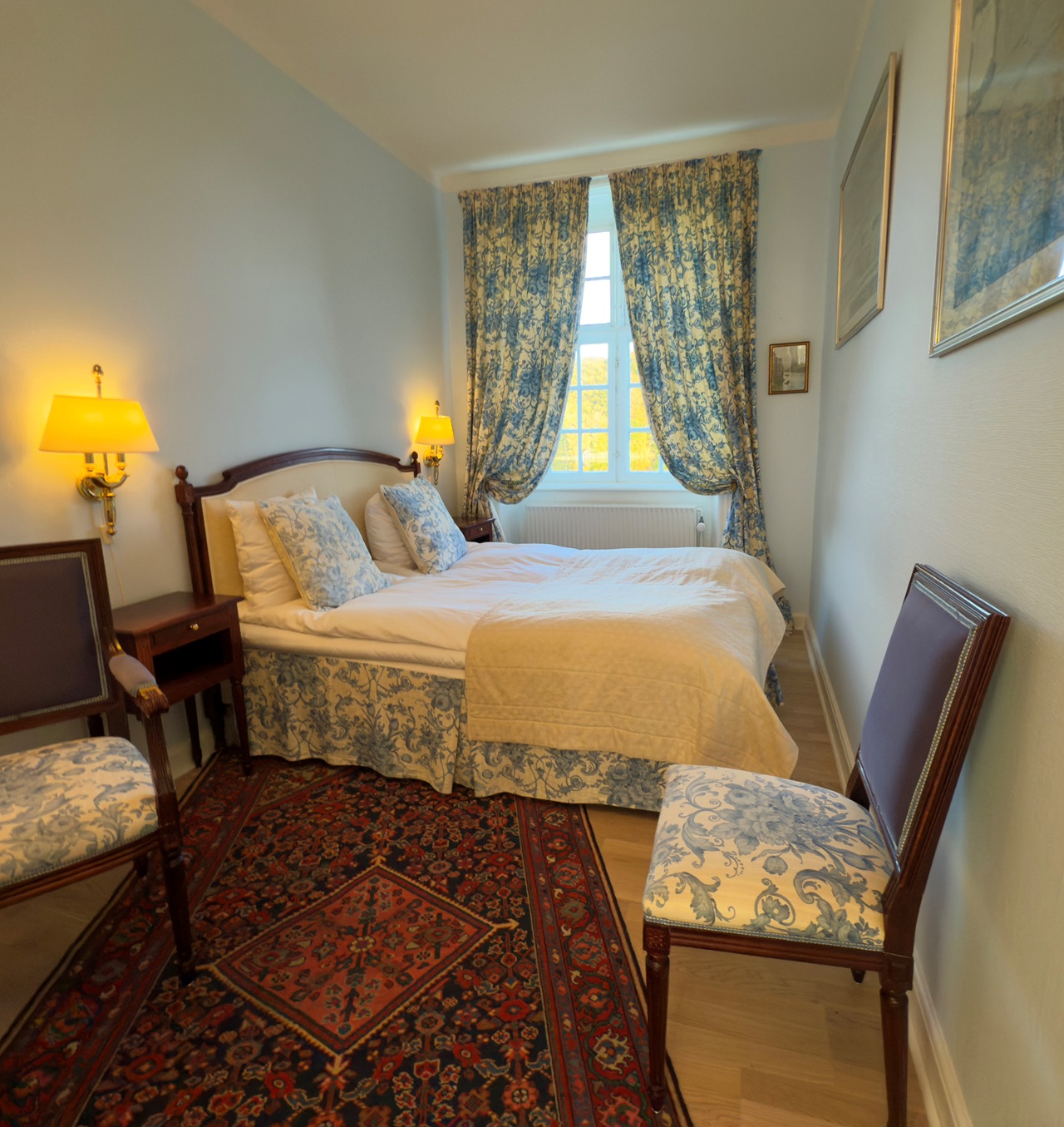 Slottet tilbyder 40 stemningsfulde værelser, hvor ingen er helt ens. Værelserne er individuelt indrettet med respekt for slottets historie og ofte med originale møbler og nøje udvalgte tekstiler, hvilket skaber en autentisk og hyggelig atmosfære.