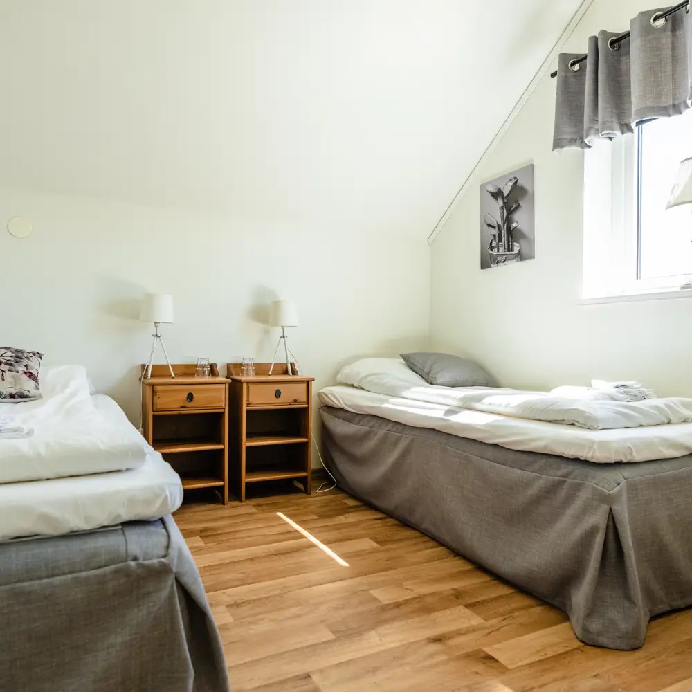 Efter en dag på golfbanen kan du slappe af på det charmerende gårdshotel eller i de hyggelige hytter, som ligger tæt på golfbanen. Gårdshotellet byder på lyse og komfortable værelser med en rolig og landlig atmosfære – perfekt til par og mindre grupper, der ønsker at kombinere golf og afslapning. Hytterne ligger i en idyllisk stugby omgivet af naturen og har to soveværelser med enkeltsenge, et alrum med et lille køkken, bad og egen terrasse med grill, hvilket giver både komfort og fleksibilitet for familier eller golfgrupper, der ønsker privatliv og hyggelige aftener efter golfen.